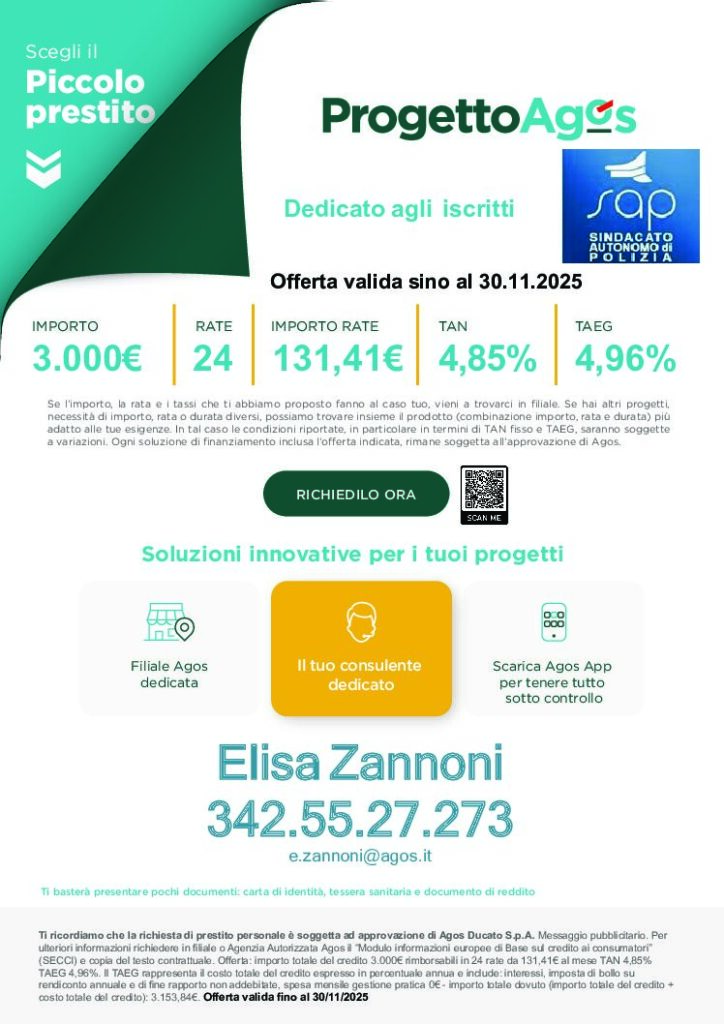 Prestito AGOS – convenzione SAP fino al 30 Novembre 2025.